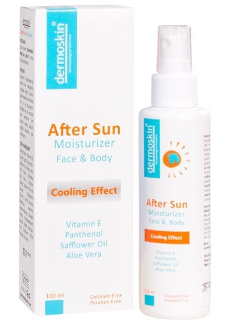 Dermoskin After Sun Lotion, formülünde bulunan "Cooling Effect" aktif maddelerle cildi serinleterek ferahlık sağlar. Güneş sonrası oluşmuş yanık ve gerilme gibi hassasiyetlerin giderilmesine, E Vitamini ile tahriş ve kızarıklığı önlemeye, Safflower Oil ile cildin koruma tabakasının güçlenmesine, Panthenol ile güneşten hasar görmüş cildin onarılmasına, Aloe Vera ile nem kaybını önlemeye ve canlanmasına yardımcı olur.