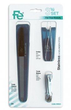 Fe Cımbız, Tırnak Makası ve Törpü ’den oluşan bu set, temel bakım ihtiyaçları için uygun bir seçenektir.